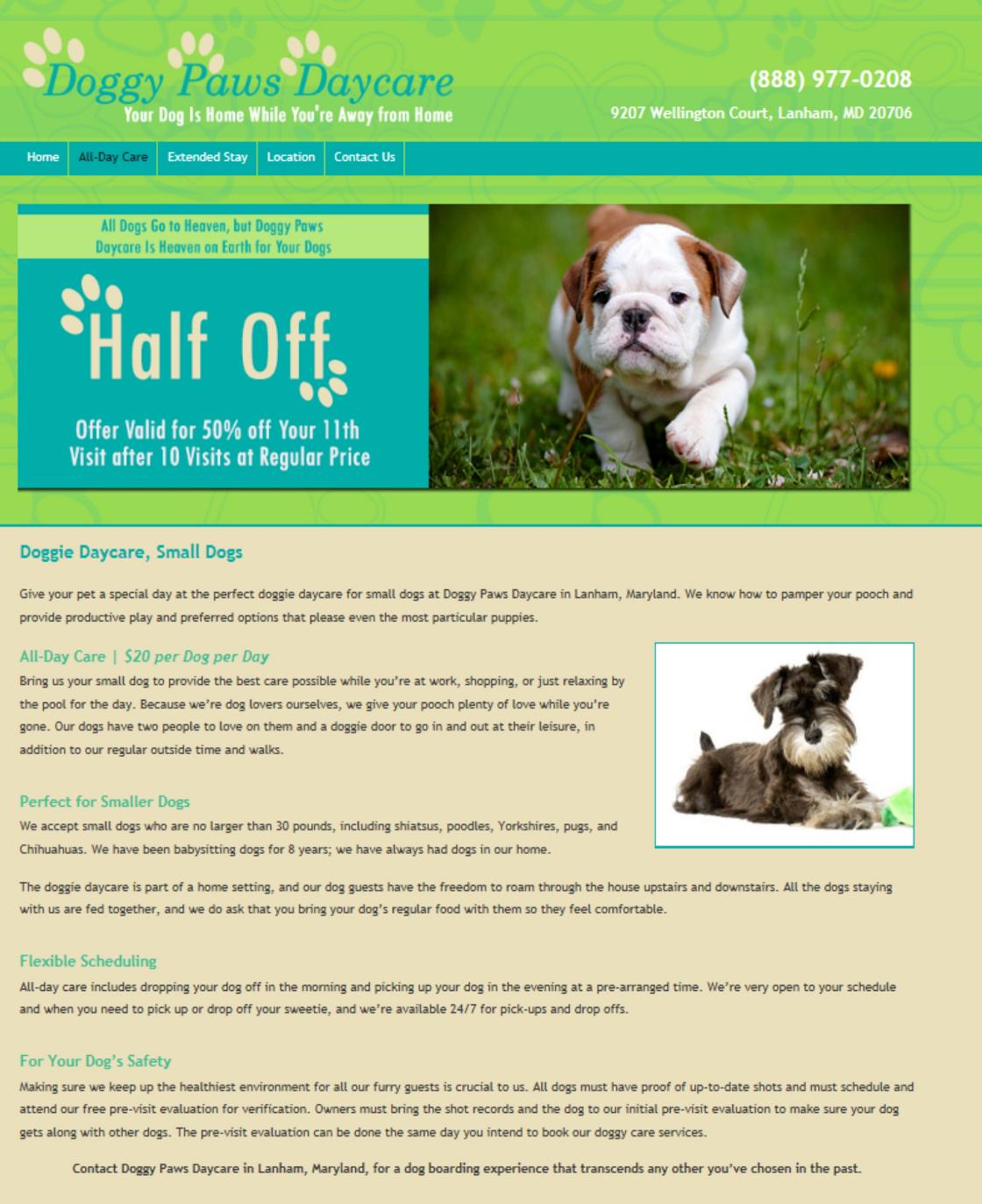 Contact Doggy Paws Daycare in Lanham, Maryland, for a dog boarding experience